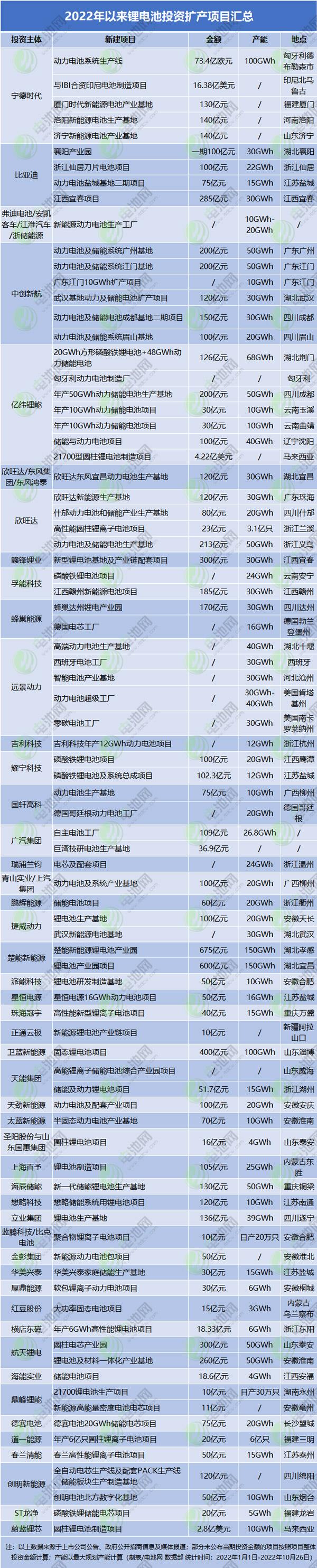 12月(yue)12日電池網公布的(de)數據顯示,據不完(wan)全統計,2022年以🍉來,僅(jin)😄在锂電池生産制(zhì)造領域,新公布的(de)投資擴産項目🤩就(jiu)多達84個,其中有69個(ge)公布投資金額,總(zong)金額超8427億元,平均(jun1)單個💯項目投資額(é)超🥵122億元;公💔布年産(chǎn)能的項目有68個,總(zǒng)産能約🤟2038GWh。