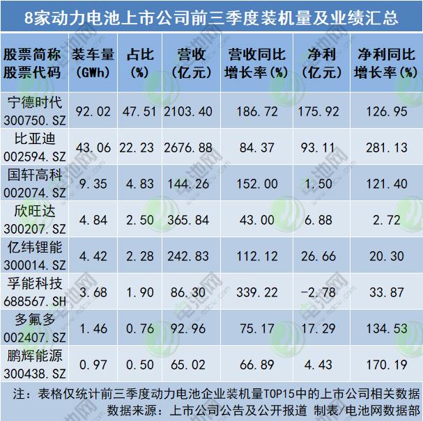 除中(zhōng)創新航未公開披(pī)露三季報,電池網(wang)注意到,動力電💘池(chi)企🔴業👉業績迎來盈(yíng)利修複。前三季度(dù),8家動力電池上市(shì)公司營收總額5777.49億(yi)元,平均營收722億元(yuan),其中,甯德時☀️代、比(bi)亞迪營收超2000億元(yuan),甯德時代、國軒高(gāo)科✔️、億緯锂能、孚能(néng)科技營收同比增(zēng)長翻倍,孚能科技(jì)營收同比增長超(chāo)3.3倍;利潤總額323億元(yuán),平🐇均淨利40.38億元,其(qi)中,甯德時代🤩淨利(lì)超170億元,甯德時代(dài)、比亞迪、國軒💯高科(kē)、多氟多、鵬輝能源(yuán)淨😍利增長同比翻(fan)倍,比亞迪淨利增(zēng)長超2.8倍。